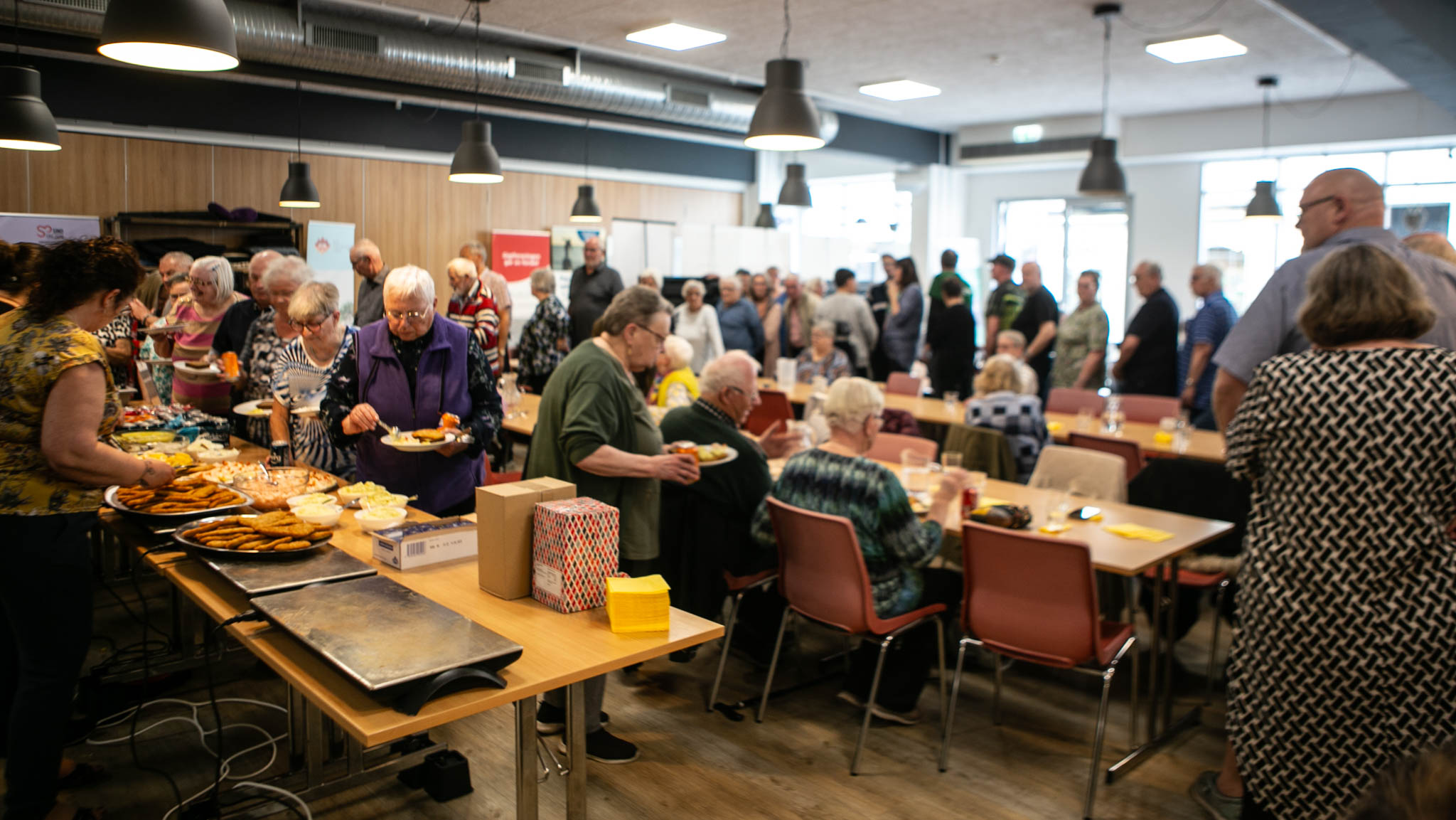 Onsdag eftermiddag kort før klokken 17 begyndte deltagerne i SINDs Folkekøkkens Påskefrokost at komme indenfor i Frivillighedens Hus og der blev fra start budt på kagemænd fra føtex og kaffe – og der var tid til, at folk kunne få snakket sammen, inden de skulle spise.