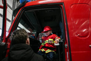Frivilligenheden var ikke alene på brandstationen – der var også besøg af en lille gut, som var klar til at køre ud og slukke en brand eller to.