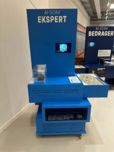 I bibliotekets EXPO-lounge kan besøgende opleve en miniudstilling, der stiller skarpt på teknologiens muligheder og dilemmaer. Publikum inviteres til at reflektere over, hvordan kunstig intelligens påvirker vores relationer, demokrati og fremtid.