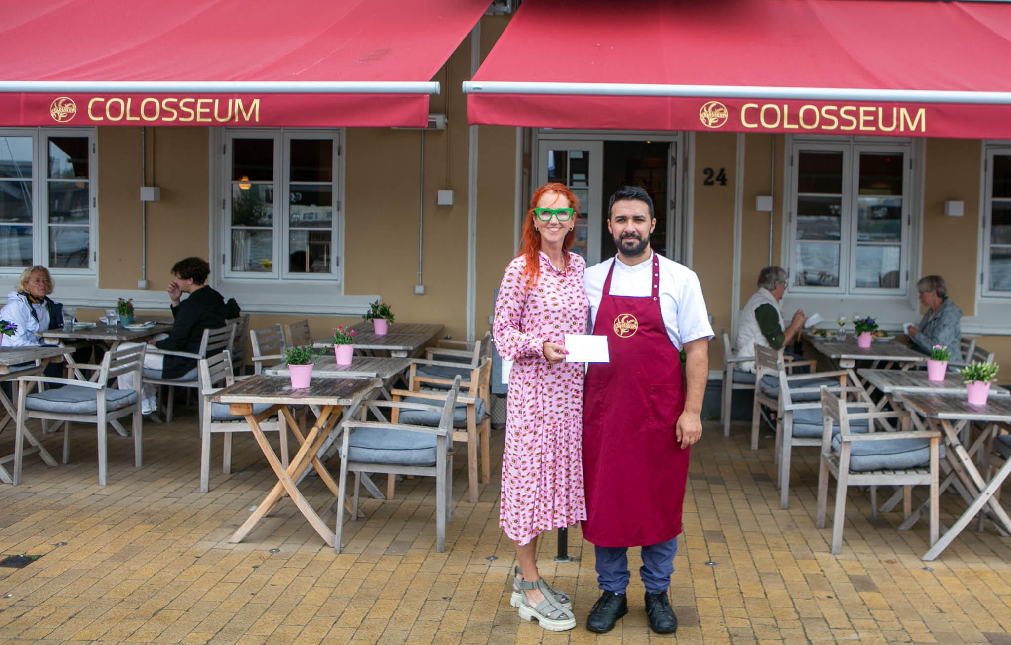 Onsdag var hun blandt andet hos Ali Abu Fadel Moussa, som har Restaurant Colosseum, som støttede Knæk Cancer med et gavekort, der skal under hammeren den 23. oktober.