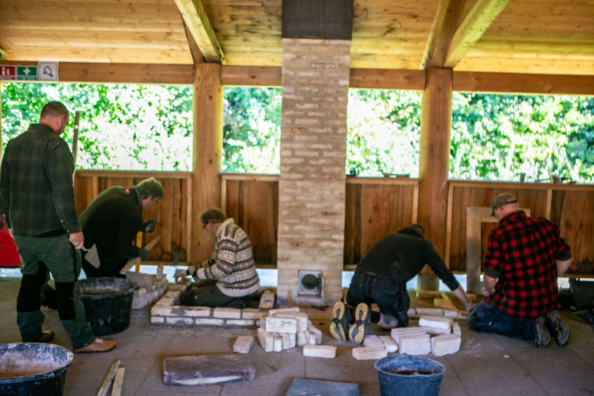 Fredag, lørdag og søndag er der en lille gruppe mennesker på kursus i Bålhytten på Kær Vestermark. De er i gang med murerske, mørtel og gå-på-mod for at lære at lave deres eget udekøkken – med pizzaovn og ‘raketkomfur’.