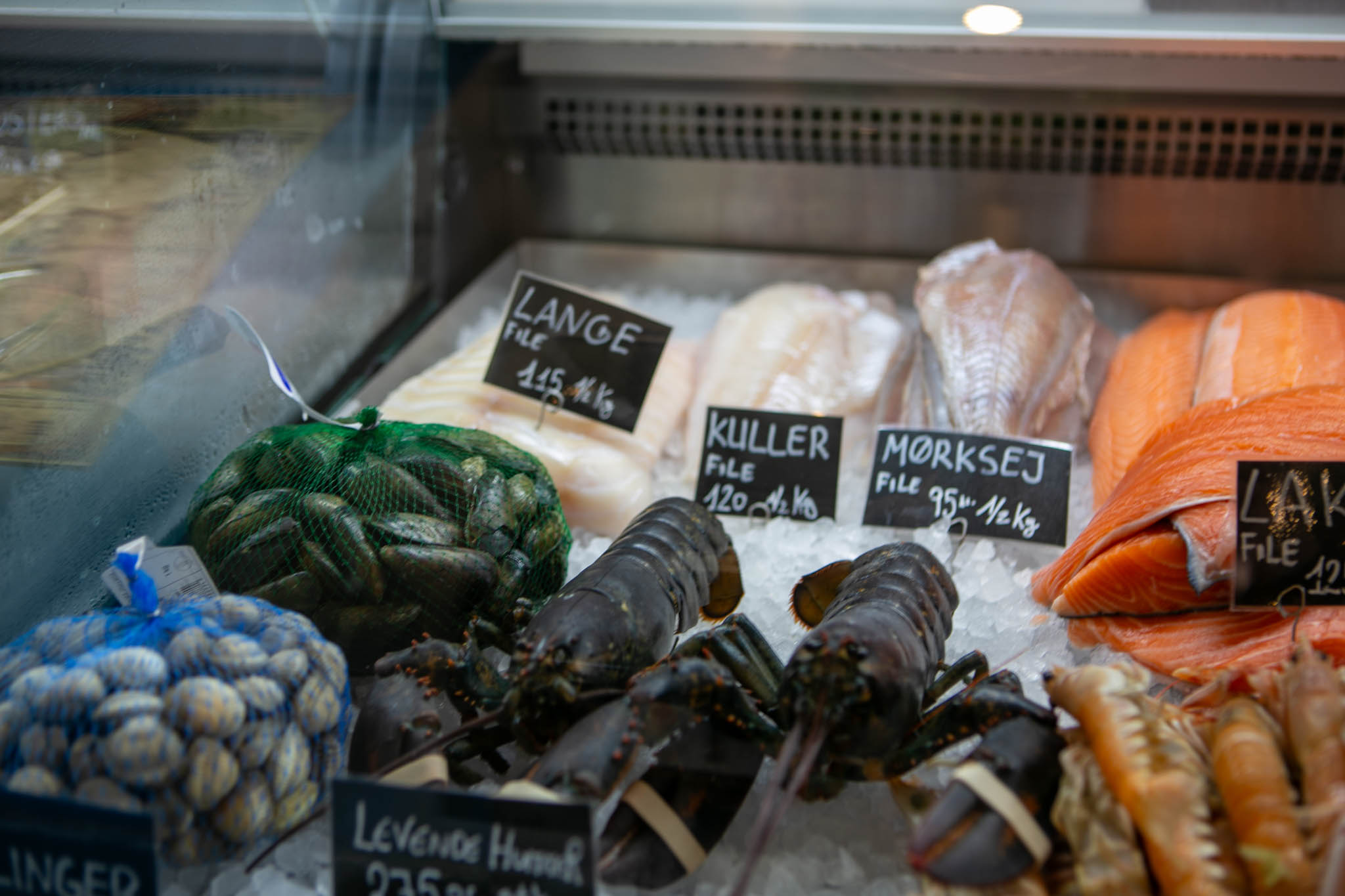 “Der er lange, kuller og mørksej, som er velsmagende fisk og et glimrende alternativ til torsk”, siger siger Korosh Abdi, som ejer fiskebutikken sammen med Samuele Bani.