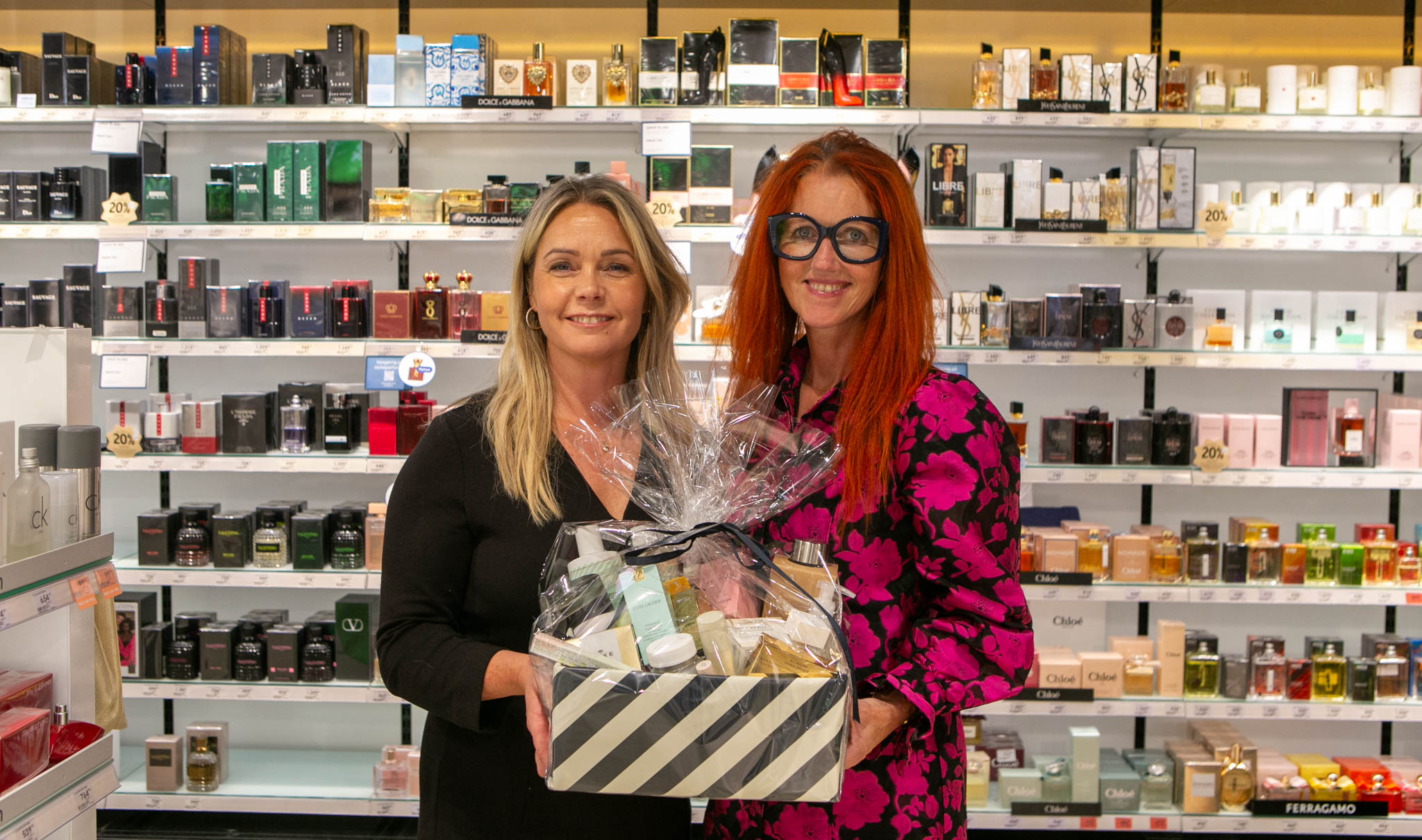 Onsdag eftermiddag hentede Lena Krag Schmidt, som for tiden har travlt med at samle sponsorgaver til sin Knæk Cancer-auktion i Park by Mens Cut den 23. oktober fra klokken 18:30, en fantastisk flot gavekurv i Matas i Perlegade.