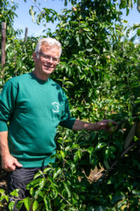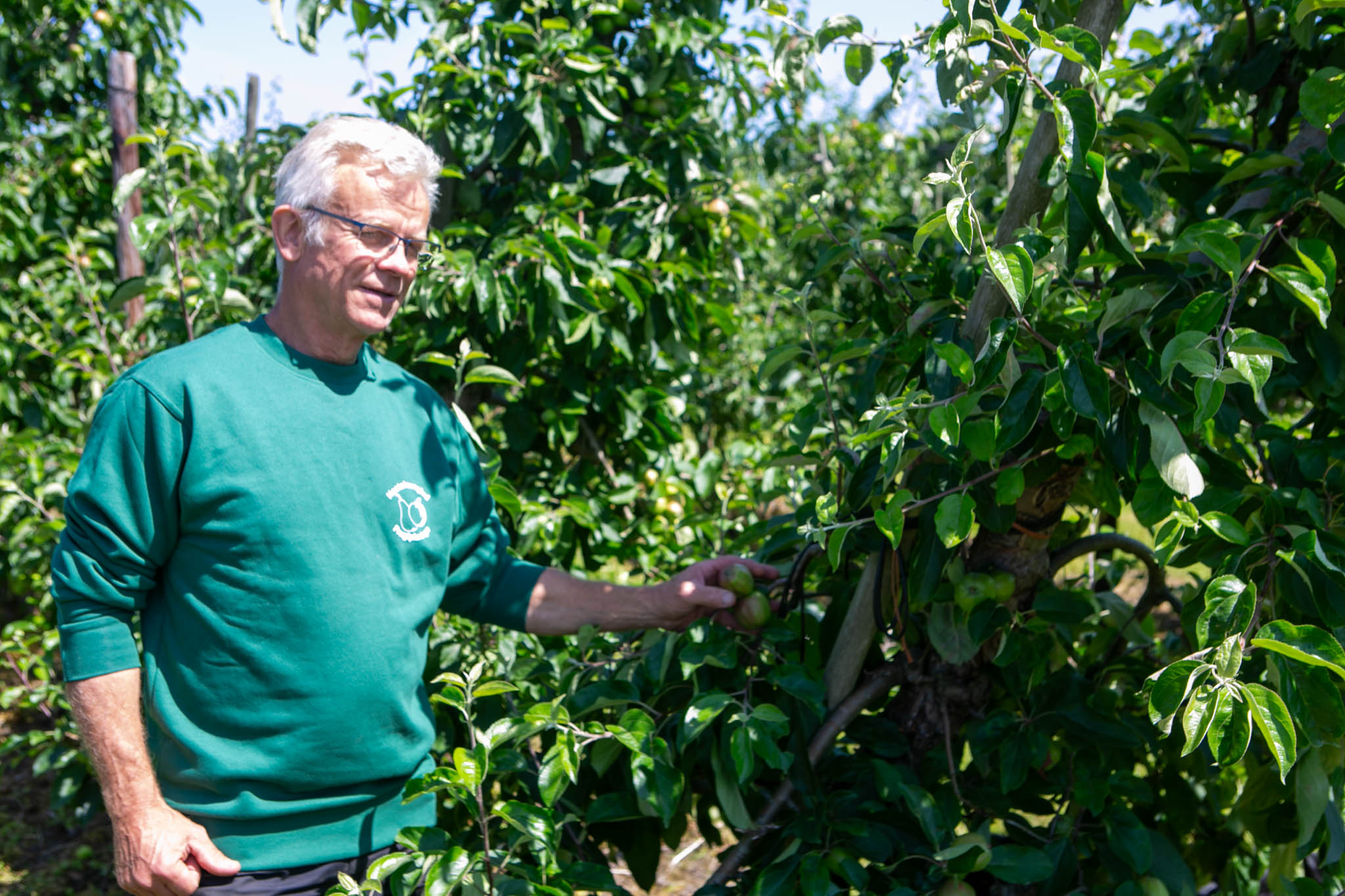 ”Vi har 15 hektar med frugttræer og dyrker æbler, pærer, kirsebær og blommer. Derudover dyrker vi også kartofler og grøntsager”, siger Henrik Petersen til Nært & Nyt.