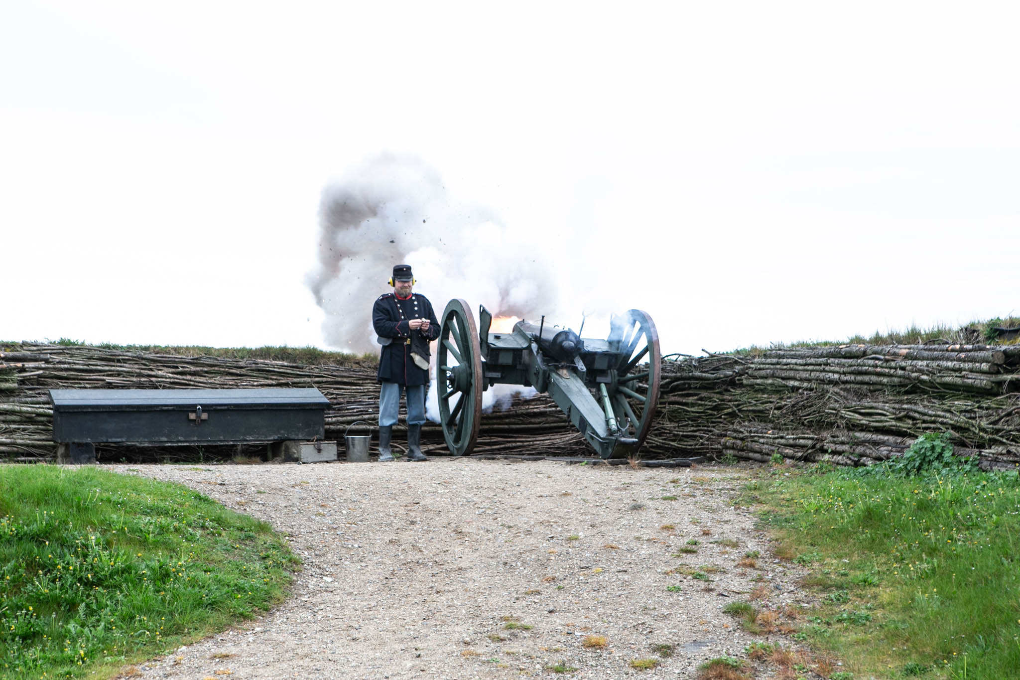 Og i historiecentret, hvor gæsterne hjalp til med at tælle ned, gav kanonen et brag – og så var det op til hver enkelt gæst at forestille sig, hvordan det ville være at stå ude på den anden side af skansen i 1864.