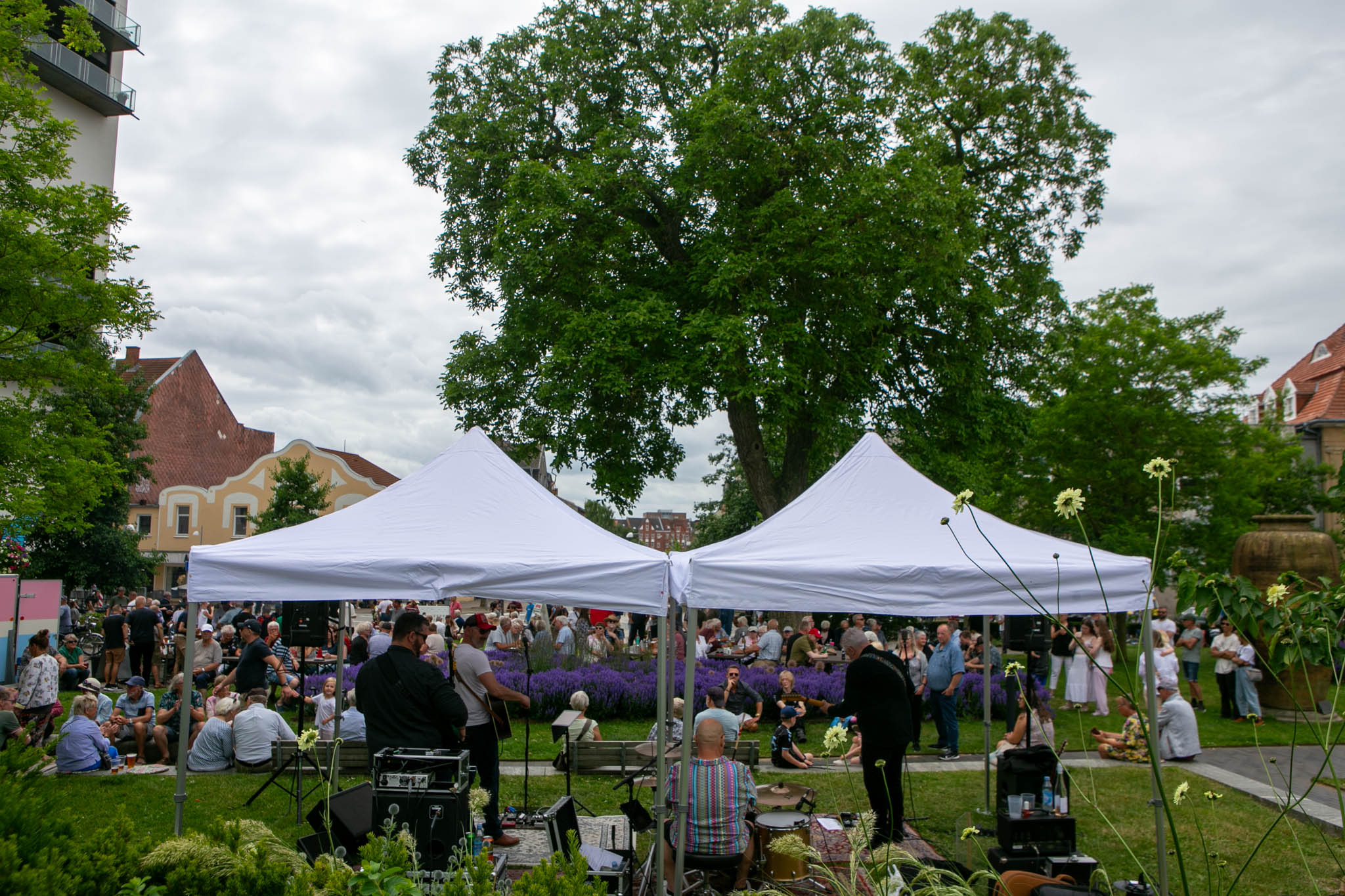 Vores Sønderborg har hyret Southern Comforts, som bestemt er et både velspillende orkester og scenen var sat i Apotekerhaven.