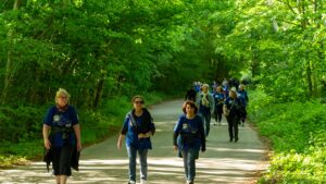 ”Derfor ved vi, at de sætter stor pris på, at det er en hyggelig måde at være sammen på, hvor de både får motion, frisk luft og en nærværende snak. Vi har ikke tidtagning. Så der er ingen stress og intet pres om at komme i god form eller stille op i de rigtige løbesko”.