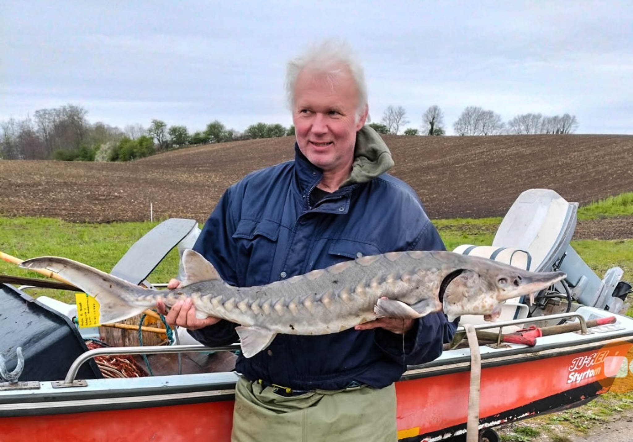 “Jeg har fisket i 35 år og har aldrig set eller hørt om nogen, der har fanget stør her i området. Men jeg har fundet ud af, at tyske og polske biologer har sat 30.000 stør ud i Østersøen i 2009. Den var ikke mærket, så den må være yngel af dem”, siger Peter Bladt.