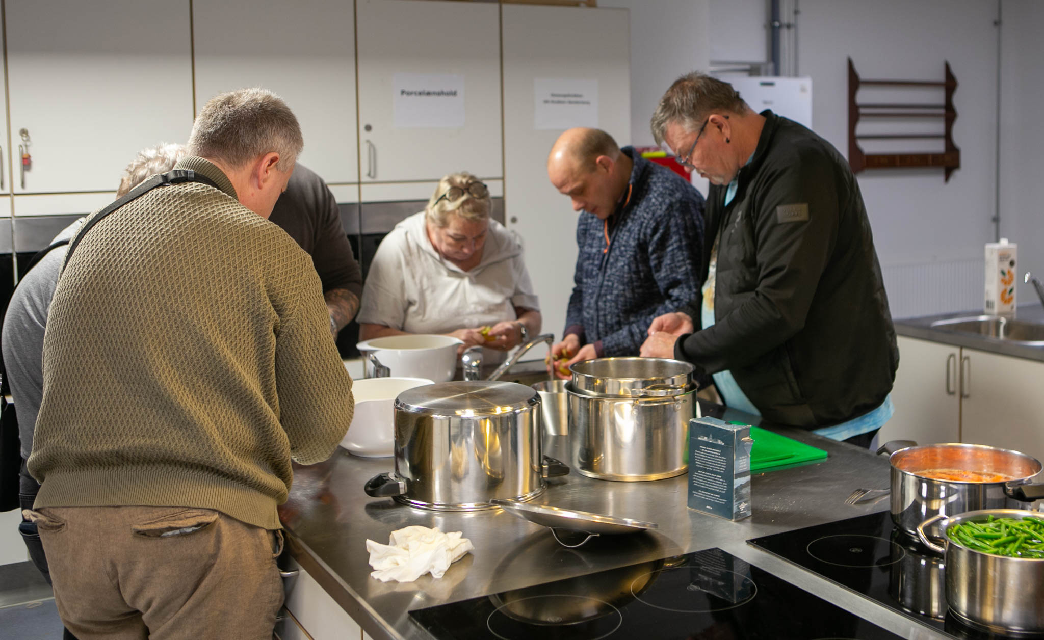 I Madklubben hjælper man hinanden med at lave den mad, som skal på bordet.