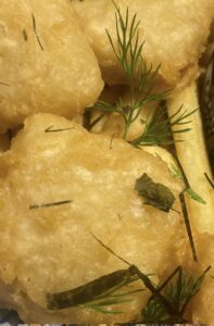 Fra havet: Husets Varmrøget laks – Røgede rejer – Popcornrejer – Fish & Chips – Marinerede scampi – Cioppino.