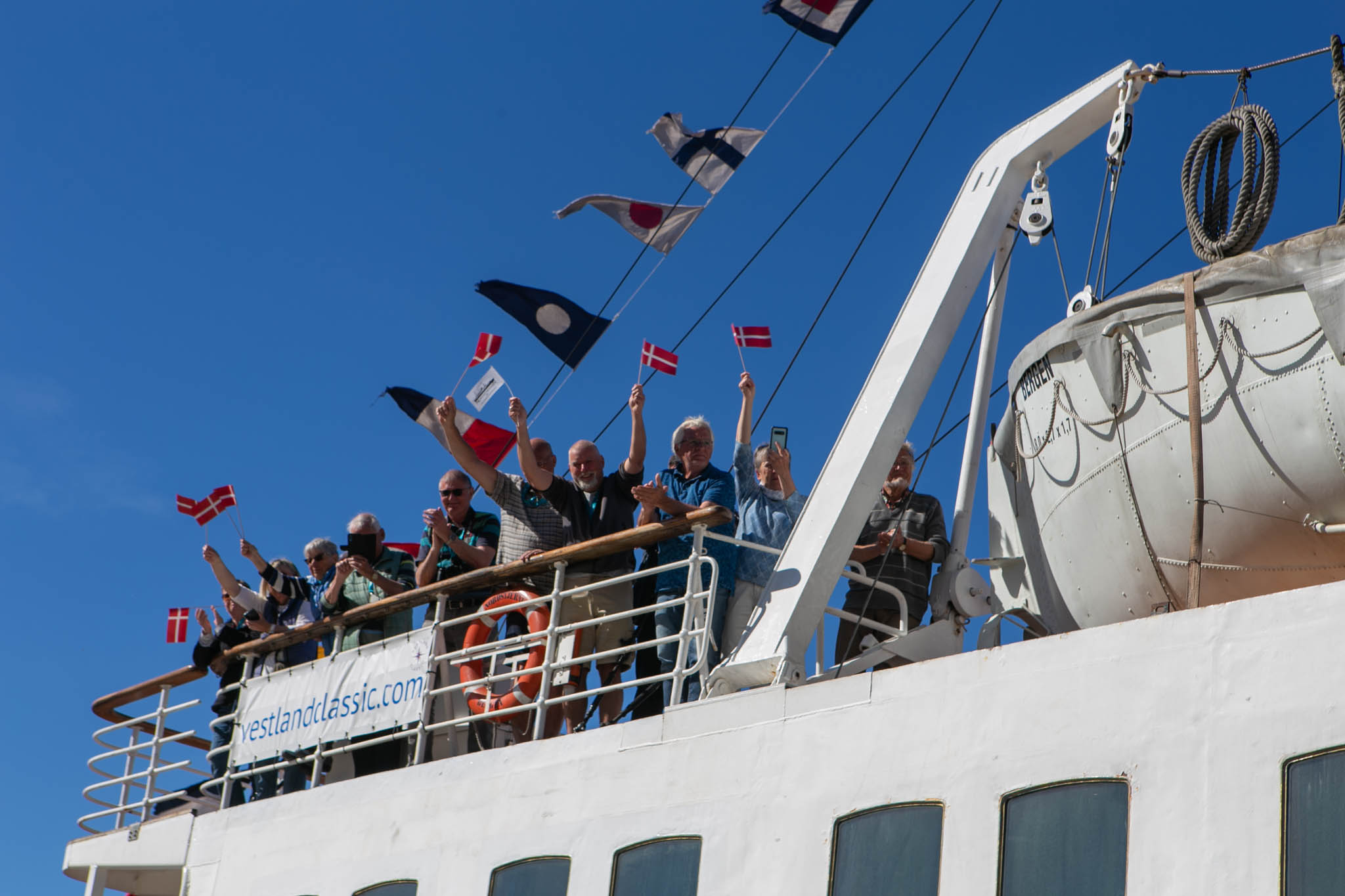 ”Det er et flot skib og så synes jeg, det er meget bedre med turistskibe i den størrelse i stedet for de store, som ikke kommer ind til kajen”, sagde borgmesteren til Nært & NYT. På kajen spillede Ringriderfestens heroldere og bød dermed alle ombord velkommen.
