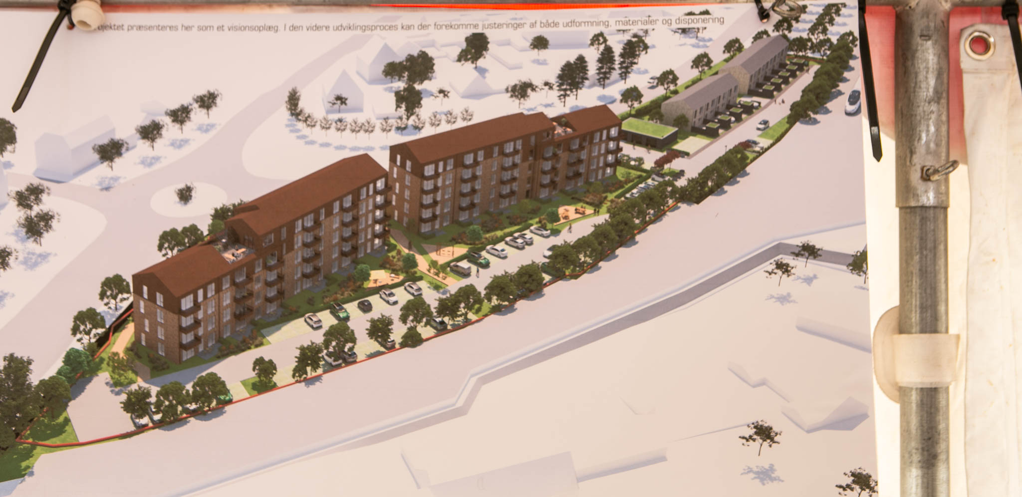 Der var hængt plancher op, så de fremmødte kunne få et indtryk af både kommende etageejendomme og rækkehuse.