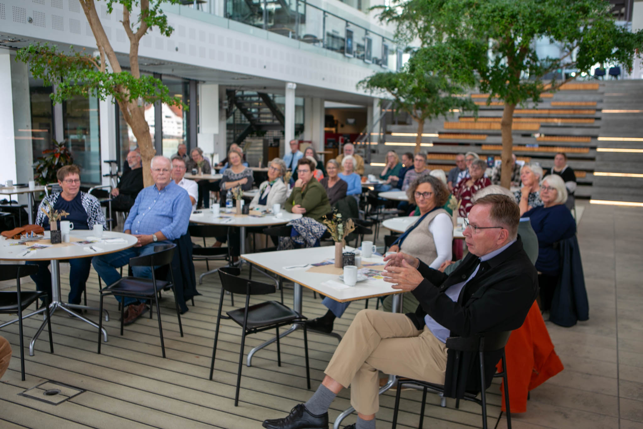 Det hele bliver krydret med teaterhistoriske tilbageglimt og anekdoter fra de skrå brædder. Café Alsion tilbyder salg af en frokostplatte, kaffe og kage. Det kan være en god idé at bestille på forhånd, fordi pladserne fyldes hurtigt.