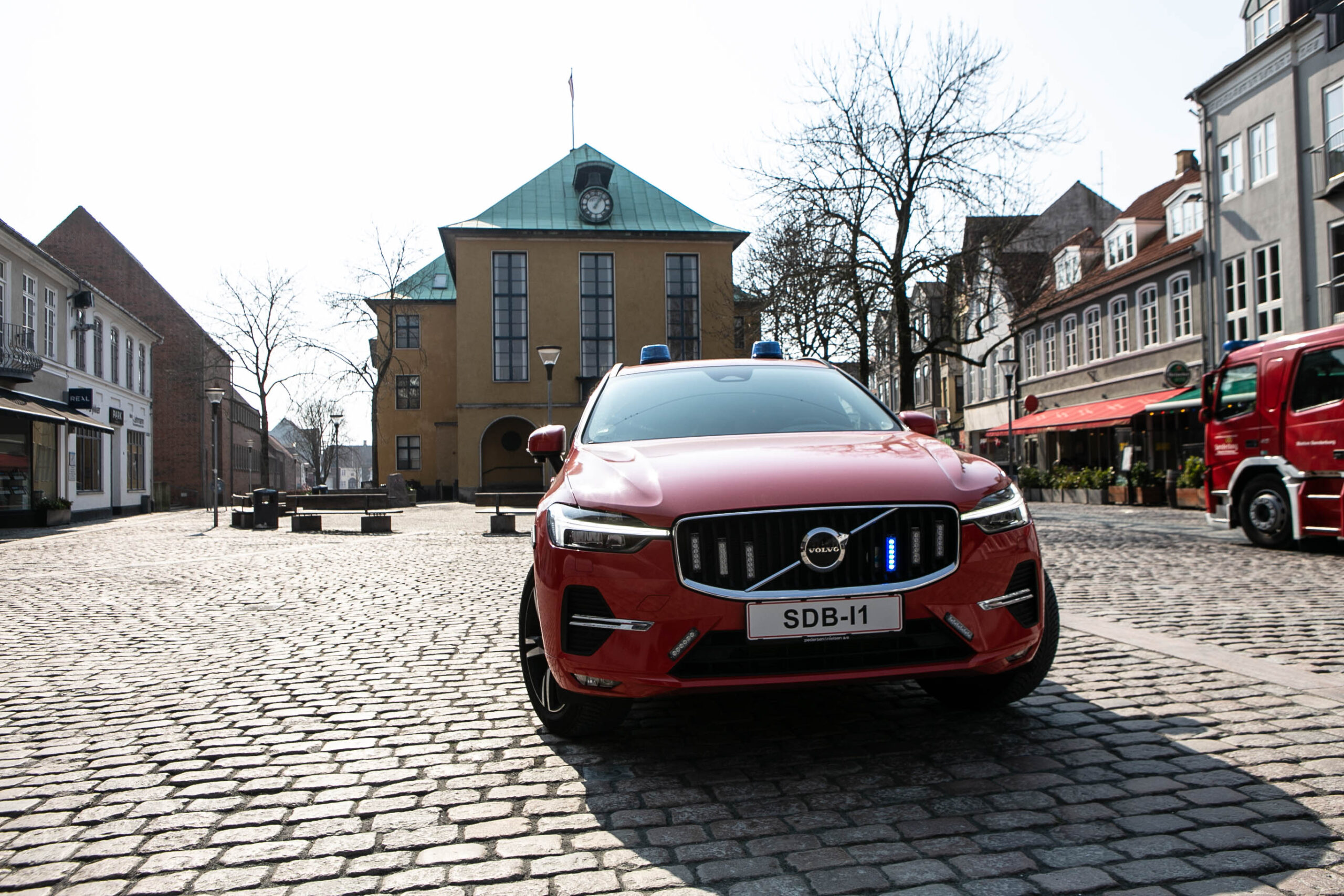 Mens Beredskab Sønderborgs indsatsleder, Jeppe Jørgensen var på Rådhustorvet mandag ved 13-tiden fik et opkald ham til at løbe ud i indsatslederbilen og køre afsted med blå blink.