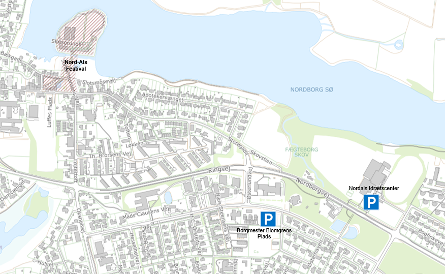 Nord-Als Musikfestival henviser til parkeringsområder ved indkørslen til Nordborg – og der er fri parkering ved Nordals Idrætscenter samt Borgmester Blomgrens Plads. Parkeringen skiltes tydeligt og fra dem er der kun en kilometer til festivalpladsen.