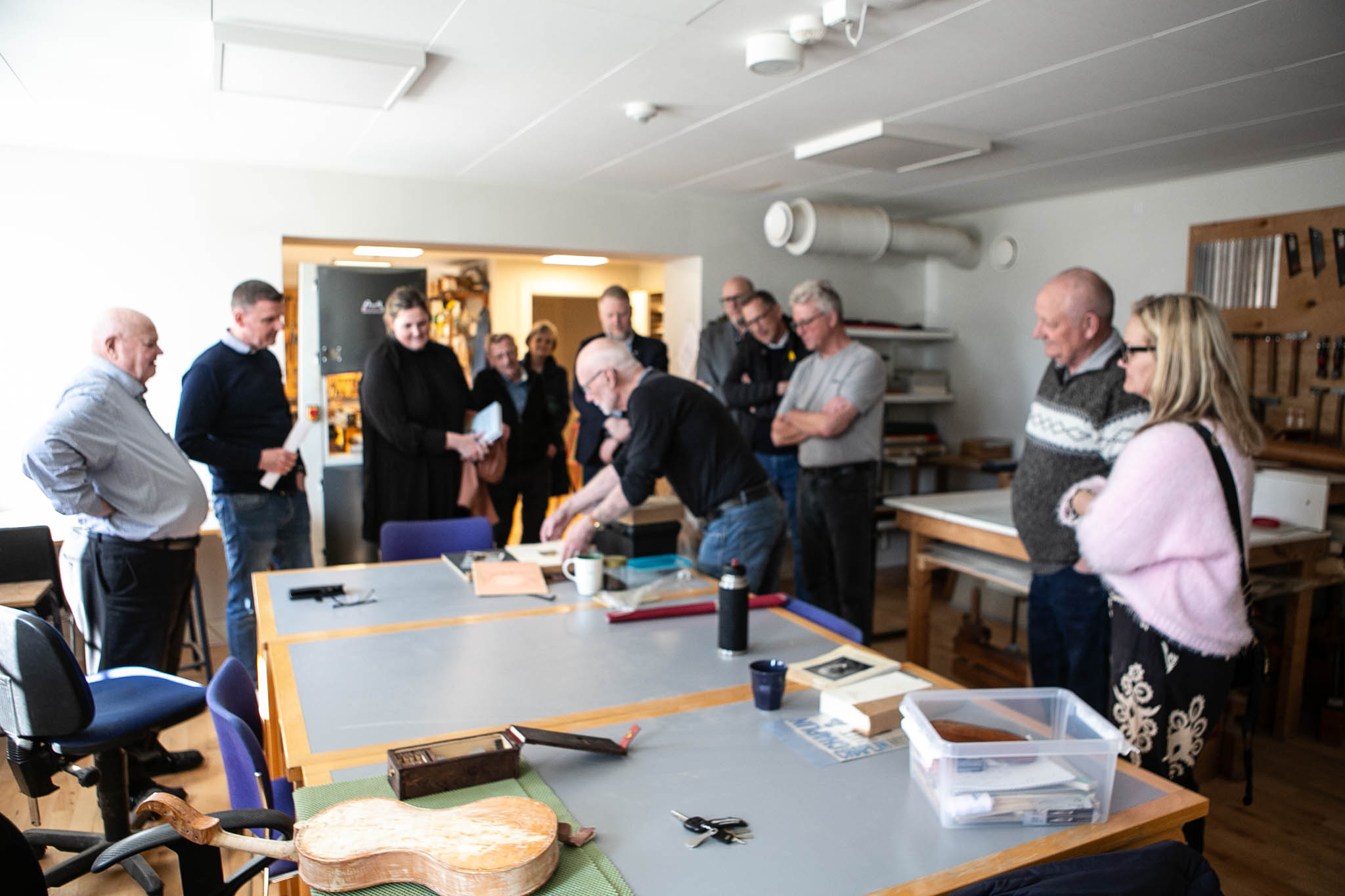 “Her er det de gamle håndværk som bogbinderi, violinbyggeri, drejeværksted, vævning og andet, som trækker brugere til og det er jo fint. Det vigtige er, at mennesker har fællesskaber, som de kan samles i, at den enkelte har aftaler med andre om at mødes. Det er meget bedre end altid sidde hjemme”.