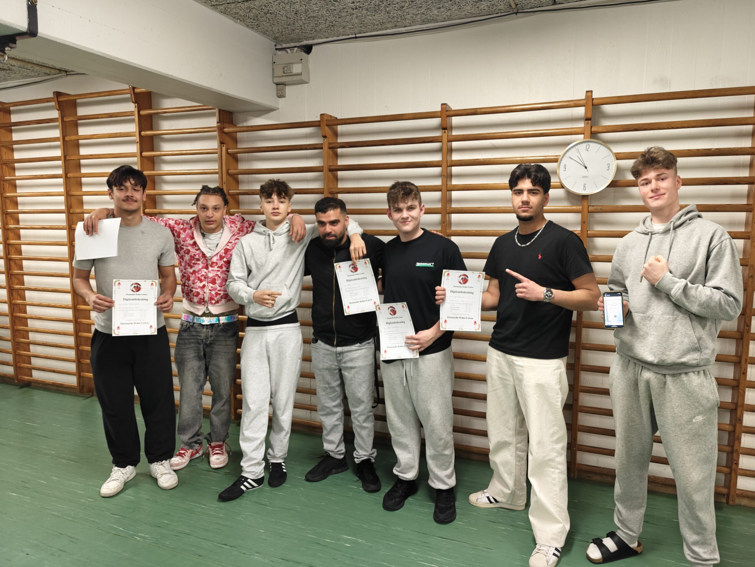 ”For at få diplom, skal bokseren sikre sig minimum 27 point og vurderingen baseres på de tekniske færdigheder såsom benarbejde, parader og rene slag. Seks ud af vores syv boksere fik diplom”, siger cheftræner Mohamed Atris til Nært & Nyt.