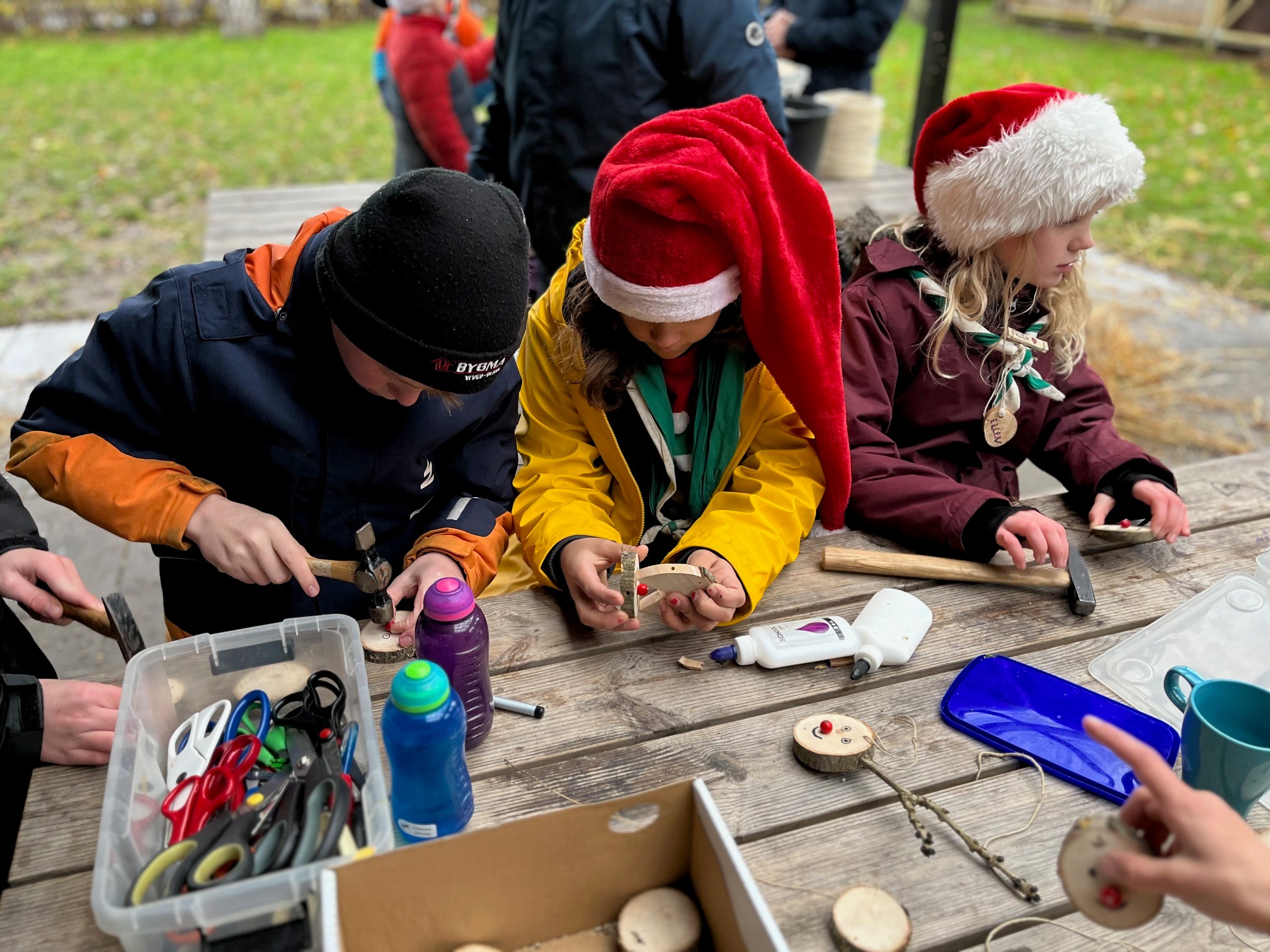 Julepynten er lavet af genbrugsbrædder og naturmaterialer – et kreativt projekt, hvor bæredygtighed, håndværk og fællesskab går hånd i hånd, skriver spejderne.