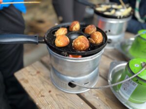 Bålet og æbleskivepanden er tændt fra kl. 11.30 til 13, så både børn, voksne og nysgerrige forbipasserende kan kigge forbi til hyggeligt samvær og en uformel snak med spejdere og ledere.