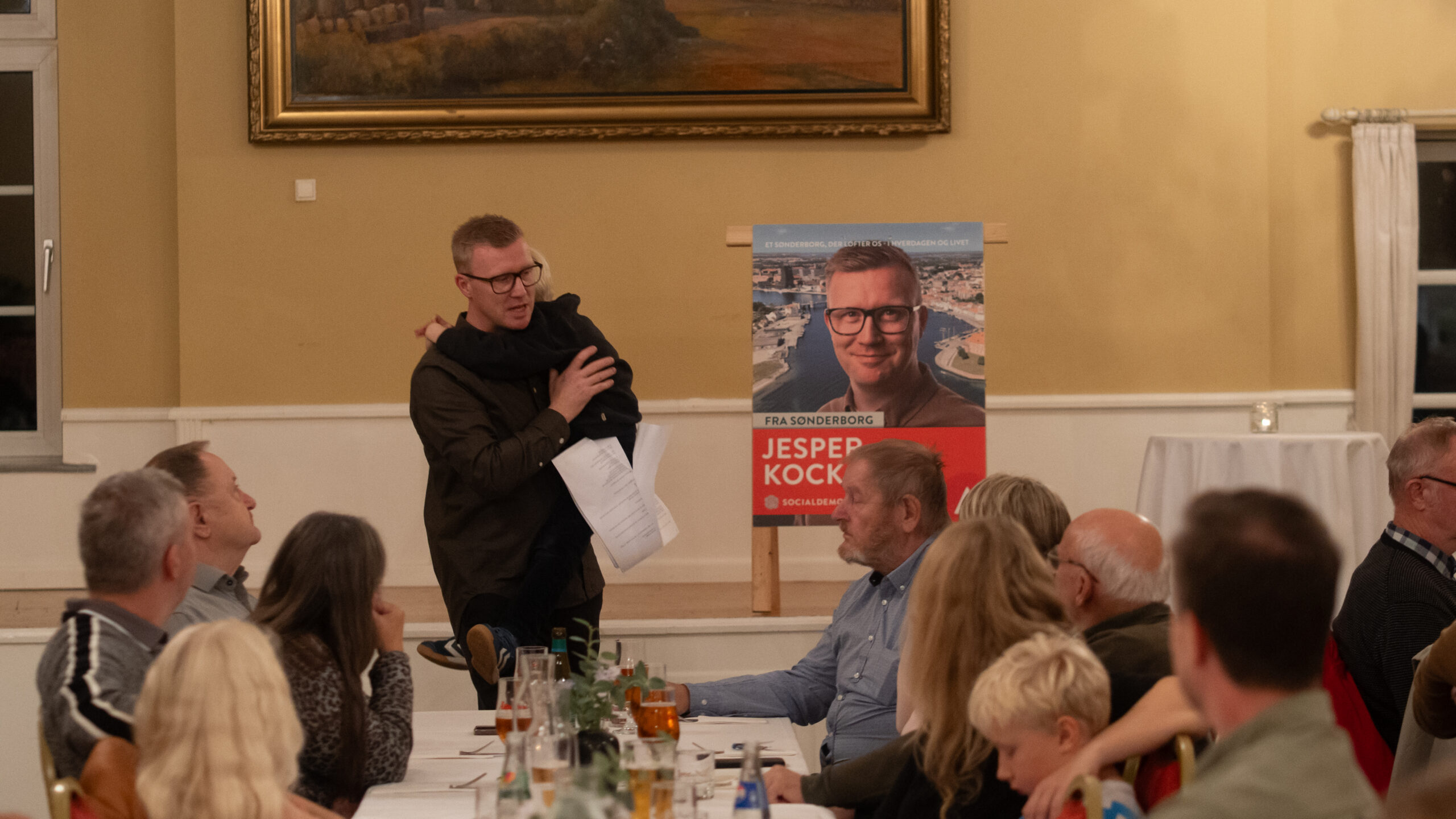 Onsdag aften var der valgflæsk på bordet på Vollerup Kro og det var byrådskandidat Jesper Kock fra Socialdemokratiet, der var den glade giver – og det gav ham lejlighed til at snakke politik med de godt 60 personer, som var dukket op.